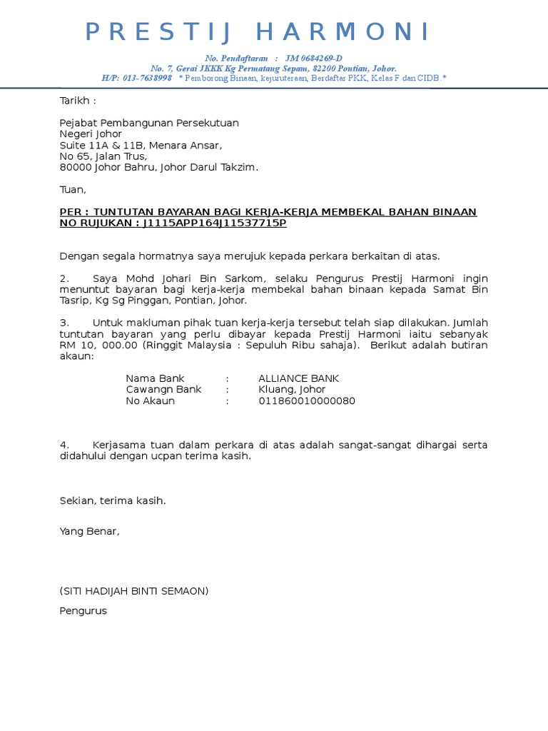 Surat untuk makluman ibubapa smstsp 2018. Contoh surat teguran keterlambatan pembayaran spp have a graphic associated with the other. Pembuatan ppjb sesuai dengan peraturan pemerintah nomor 12. Contoh surat penangguhan bayaran pinjaman bank, anda layak untuk mendapat pinjaman sehingga rm200,000 jika bayaran ansuran anda adalah seperti berikut: